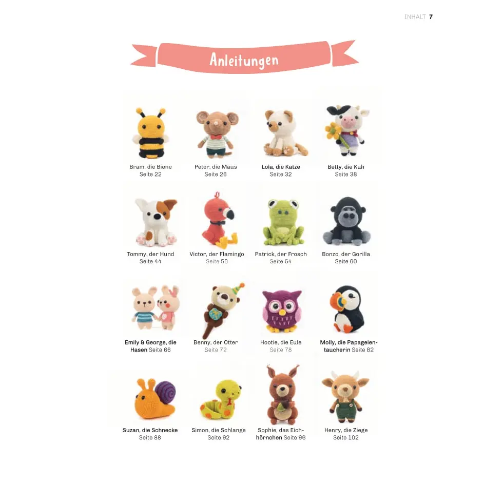 • 16 superniedliche Tiere häkeln: Hund, Katze, Frosch, Otter, Papageitaucher und viele mehr