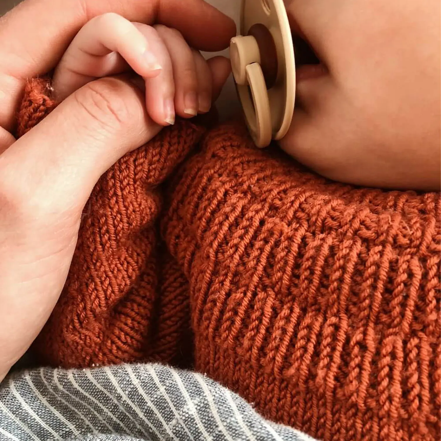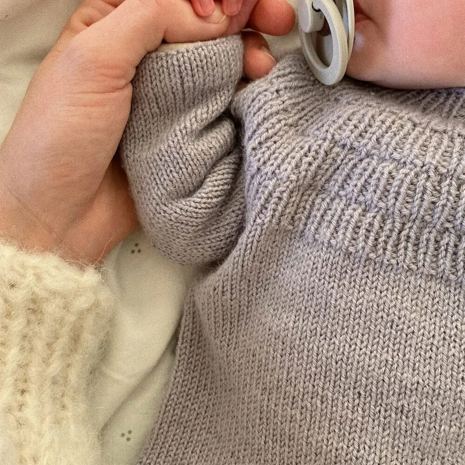 Der Ankers Bluse für Babys und Kinder wird, wie typisch bei PetiteKnit, von oben nach unten gestrickt.
