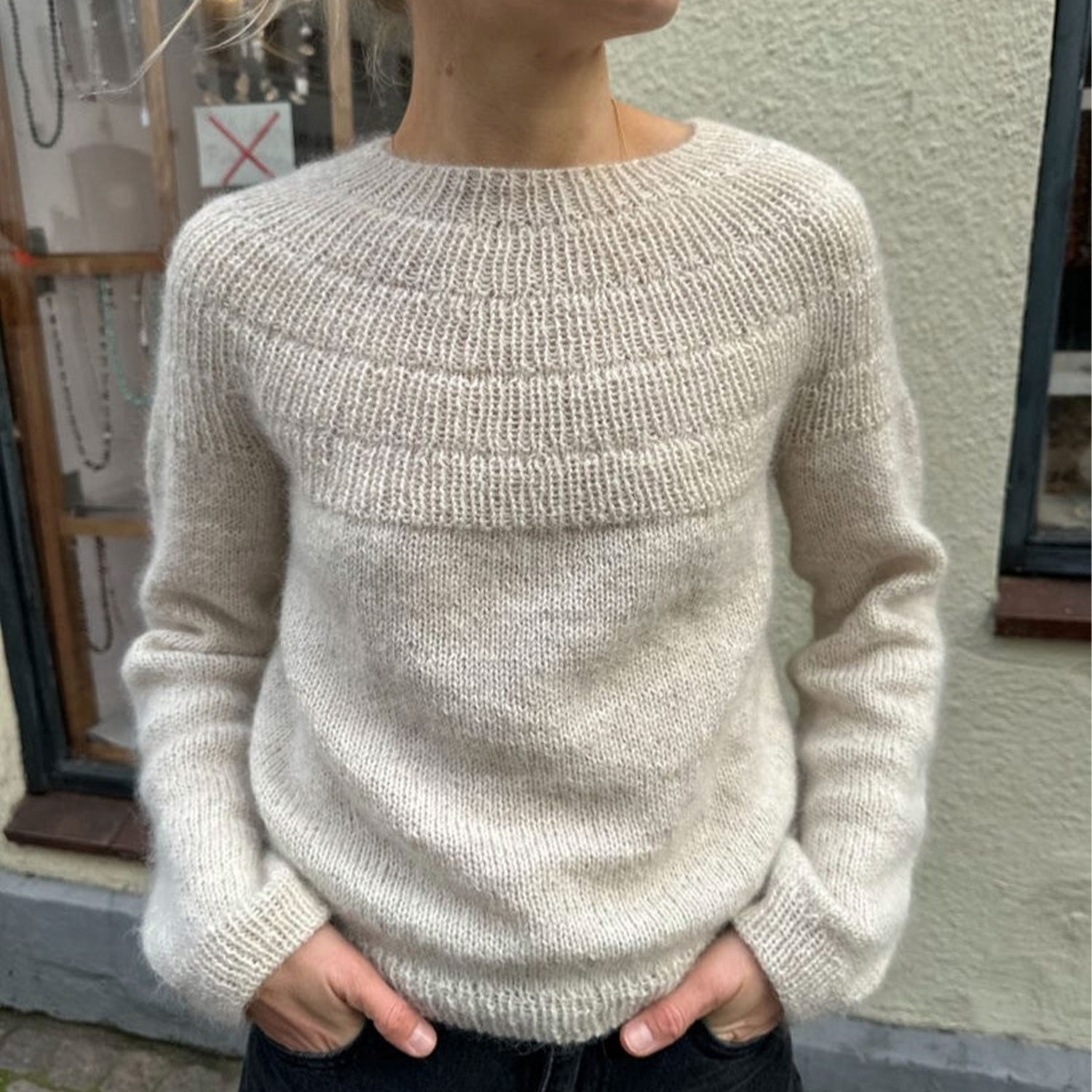 Empfohlenes Garn: Der Pullover wird mit 2 Garnen gestrickt. Grundgarn 1 und Grundgarn 2 zusammen – alles lassen sich perfekt miteinander kombinieren. Grundgarn 1: The Merry Merino 220 (Kremke Soul Wool) oder Verona (Lamana) oder Babyalpaca (BC Garn) Grundgarn 2: Premia (Lamana) oder Silky Kid RMS (Kremke Soul Wool) oder Kid Mohair (Ferner Wolle)