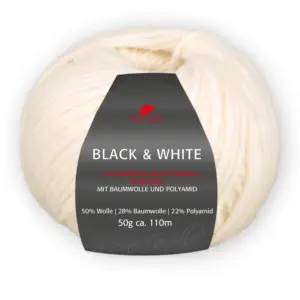 Manche mögen es weich – und für sie ist Black & White die ultimative Wahl. Dieses Mischgarn wurde speziell entwickelt, um ein unvergleichlich flauschiges Tragegefühl zu bieten. Mit einer Zusammensetzung von 50% Wolle, 28% Baumwolle und 22% Polyamid vereint es die besten Eigenschaften dieser Materialien für ein Ergebnis, das pure Behaglichkeit verspricht. Mit Black & White können Sie traumhaft lockere Winterpullover stricken, die sich anfühlen, als würde man in ein Meer aus Wattebäuschen eintauchen. Doch nicht nur das – es eignet sich auch perfekt für kuschelige Schals, anschmiegsame Loops und Stolas, die dem Hals schmeicheln und ein Gefühl von Luxus vermitteln.