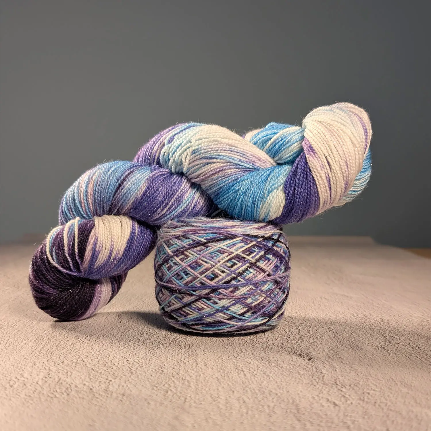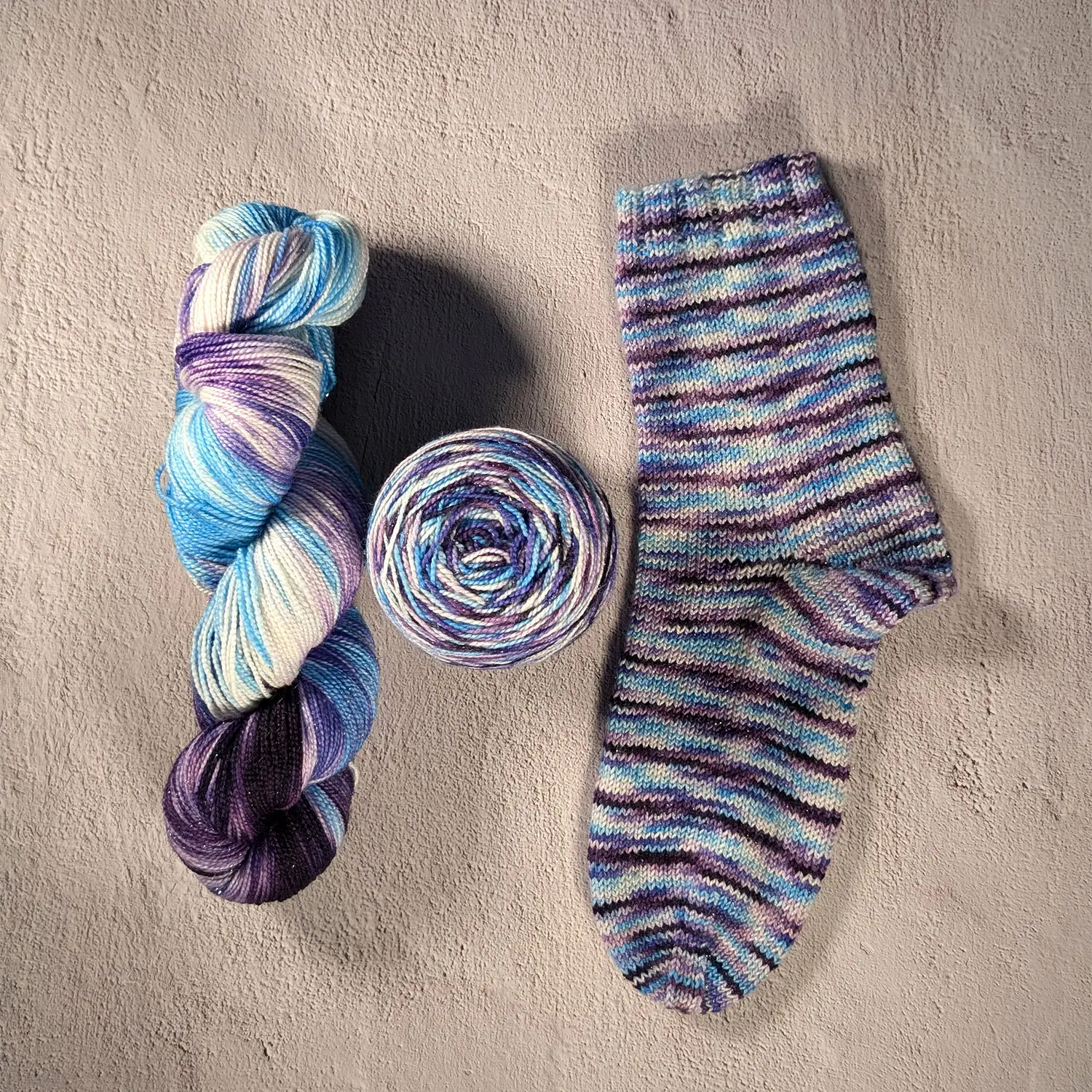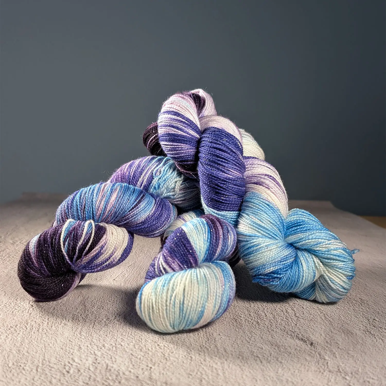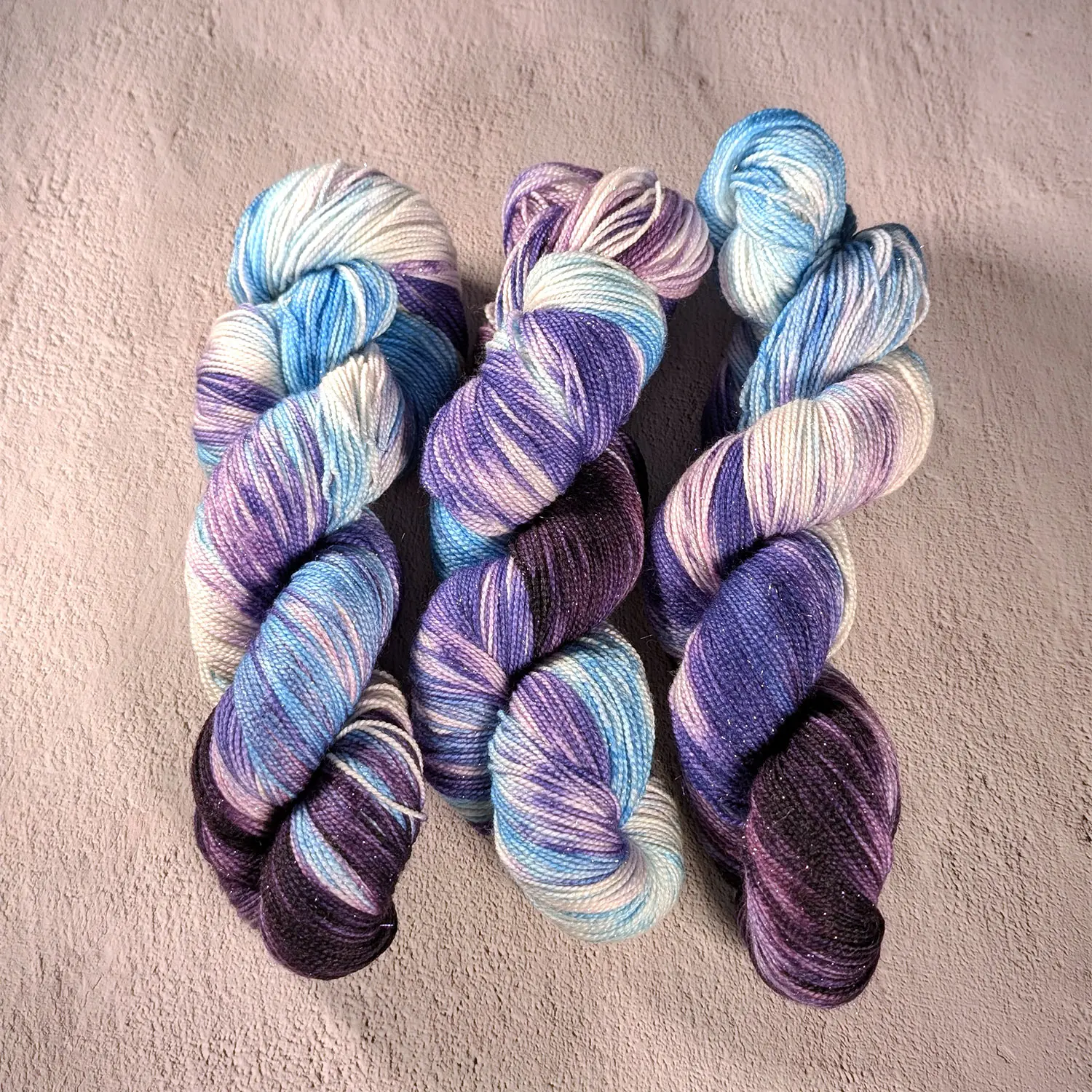 Handgefärbt auf 75% Superwash Merino, 20% Nylon, 5% Stellina-Glitzer (silber) ist „Dancer“ eine wunderbar kuschelweiche und einzigartig gefärbte Wollqualität (400m / 100g) in limitierter Auflage (24 Stränge), die dezent funkelnd schon beim Verstricken Freude bereitet.
