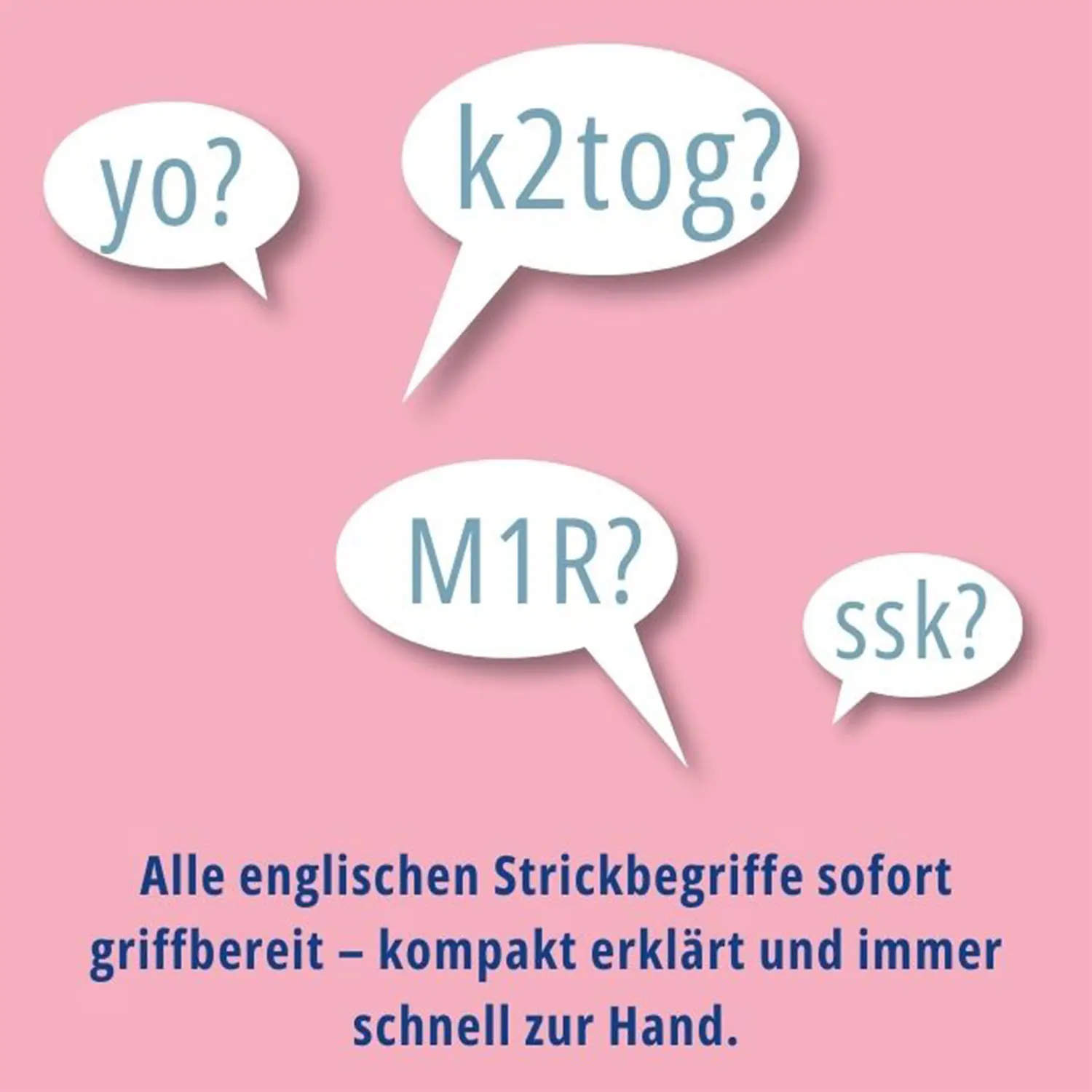 Mit diesem Buch werden diese Hürden nun ein für alle Mal aus dem Weg geräumt. Auf 160 Seiten werden nicht nur die gängigen Begriffe als Vokabeln schnell und auf einen Blick erklärt, sondern die dazugehörige Technikanleitung wird gleich mitgeliefert. M1L, ssk, k2tog, Italien Bind Off und vieles mehr werden Schritt für Schritt vorgestellt und auch so manche andere Besonderheit von englischsprachigen Anleitungen, wie zum Beispiel die internationale Garnstärkentabelle, wird noch einmal genauer beleuchtet. Dieses Buch haben Sie bald immer griffbereit und wird neben Ihrer neuen Lieblingsanleitung Ihr ständiger Begleiter im Projektbeutel oder Wollkorb.