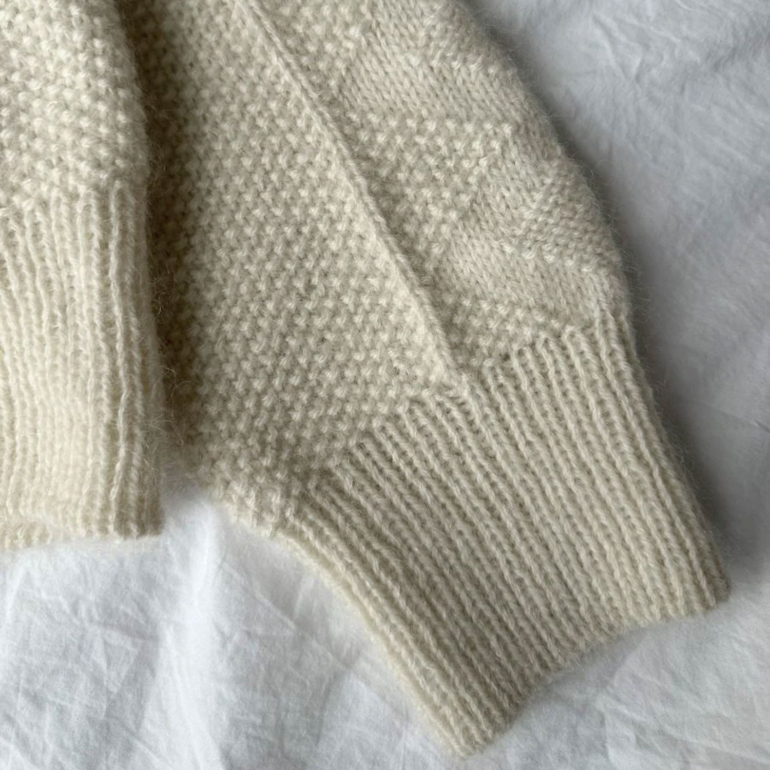 Der Esther Sweater von PetiteKnit wird lt. Strickanleitung im Strukturmuster von oben nach unten gearbeitet.