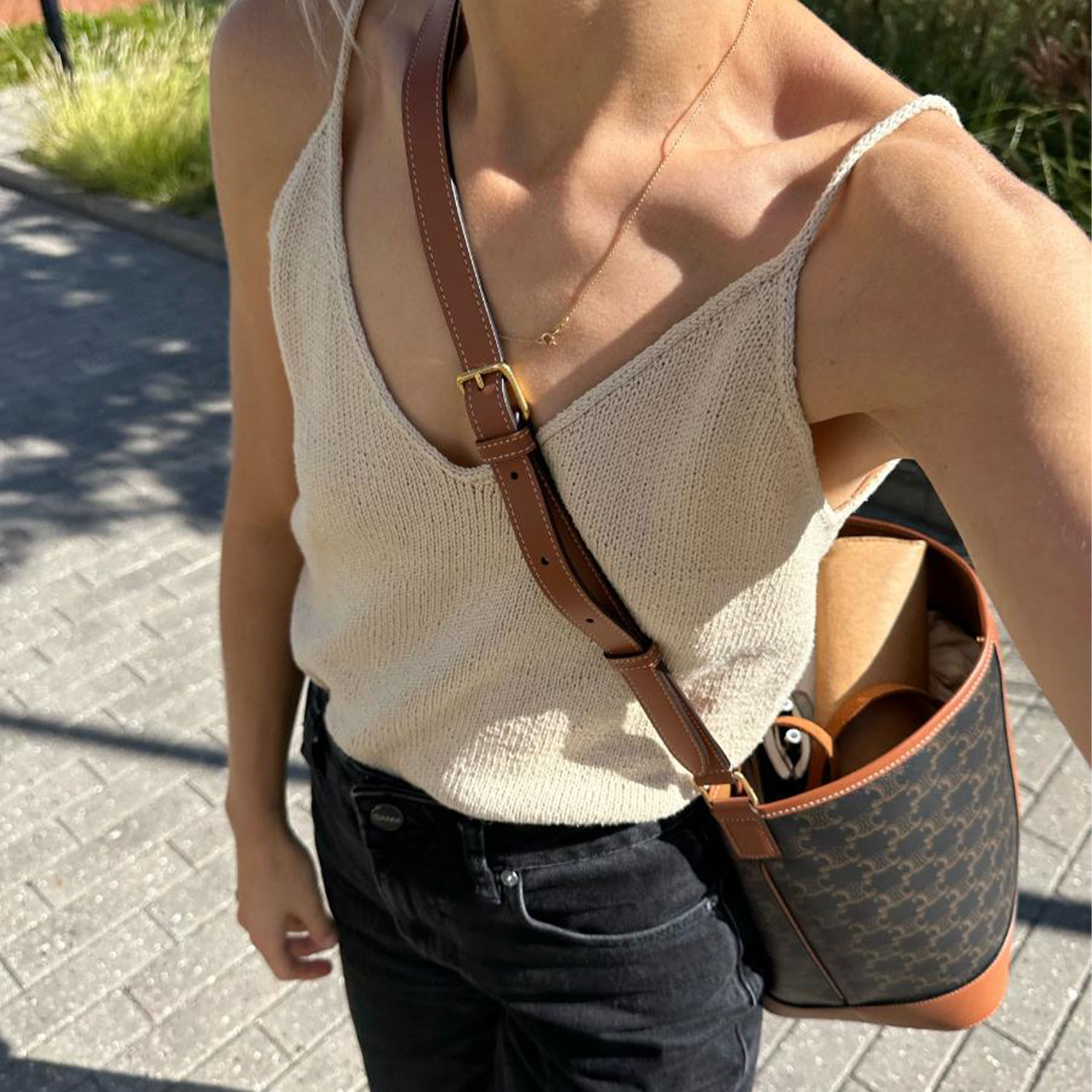Zuerst werden vier Dreiecke gefertigt, die danach auf einer Rundstricknadel gesammelt werden, um den Rumpf zu bilden. Dieser wird glatt rechts nach unten gestrickt und mit einer umgeklappten Kante abgeschlossen. Entlang der oberen Kanten werden zuletzt I-Cord Ränder gearbeitet. Diese gehen dann in die Träger über, die mit dem Maschenstich zusammengenäht werden.