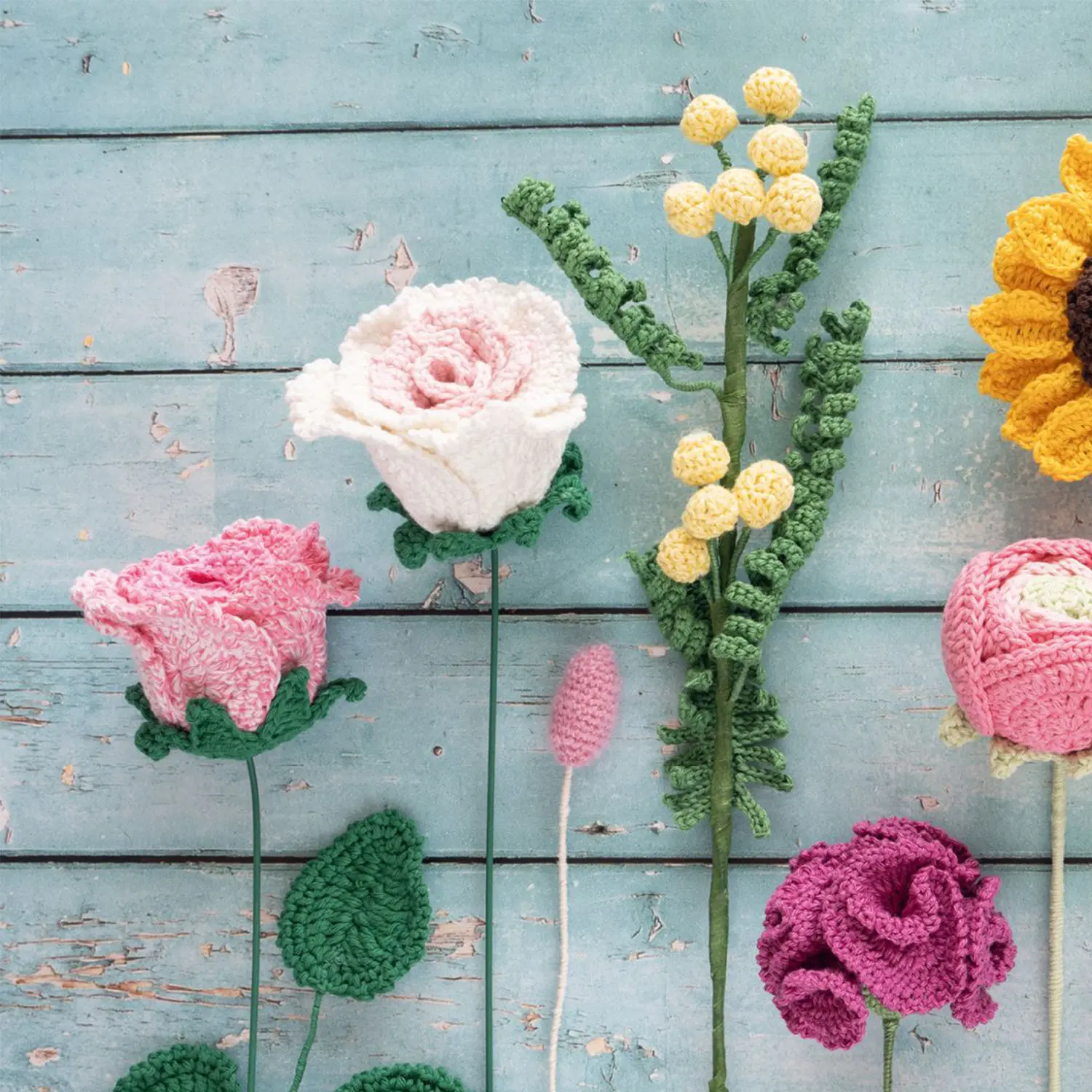 Häkle zauberhafte Blüten und nähe sie als Applikation zum Beispiel auf einen Pullover oder deine Strickjacke! Oder beschenke einen geliebten Menschen mit einem Strauß aus ihren/seinen Lieblingsblumen. Ein selbst gehäkelter Blumenstrauß macht sich wunderschön in einer Blumenvase, wird garantiert nie verwelken und ist ein persönliches Geschenk, über das sich jeder Beschenkte freuen wird!