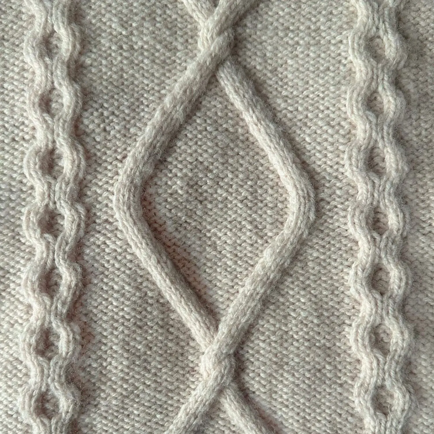 Maschenprobe: 23 Maschen x 27 Reihen im Strukturmuster auf Nadel 4 mm = 10 x 10 cm nach dem Waschen und Spannen